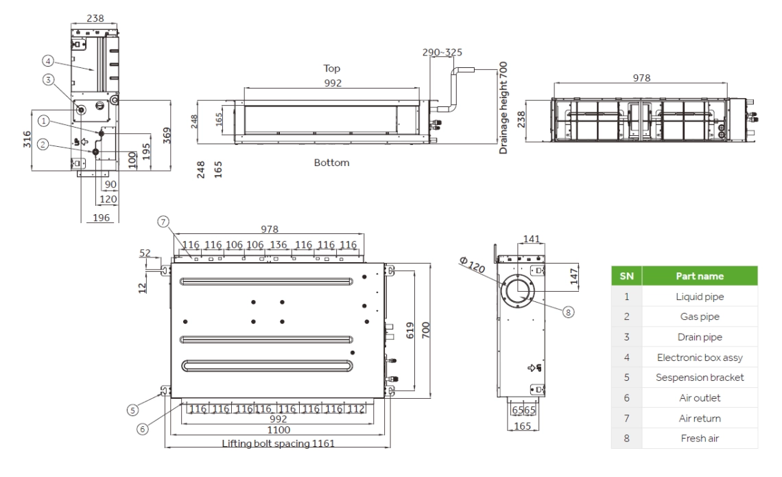 Yksikkö voi liittää useita huoneita ilmakanavan kautta, ja se voidaan järjestää joustavasti eri talotyyppien mukaan, yksi ilmastointilaite, monen huoneen jakaminen.
